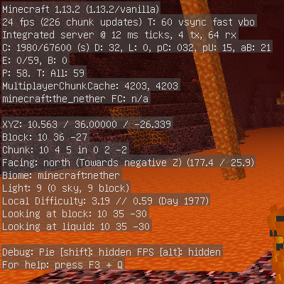 [F3]キーで表示される座標をネザー座標X,Y,Zに入力し[<]ボタンをクリックする。